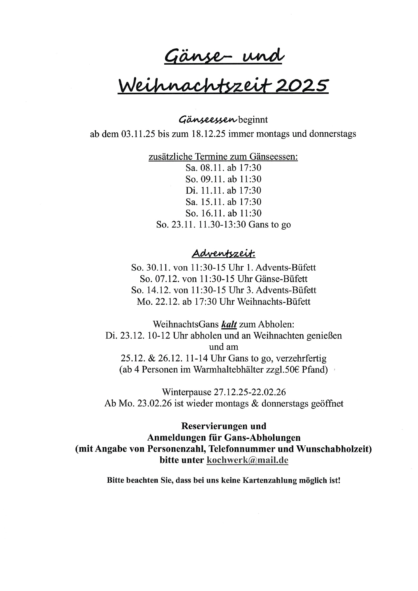 Wir freuen uns sehr auf euch, kommt vorbei und genießt mit uns noch die letzten Sommerabende im Kochwerk